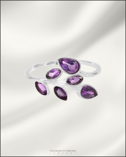 Gemstone and Sterling Silver Leaves Ring in Amethyst