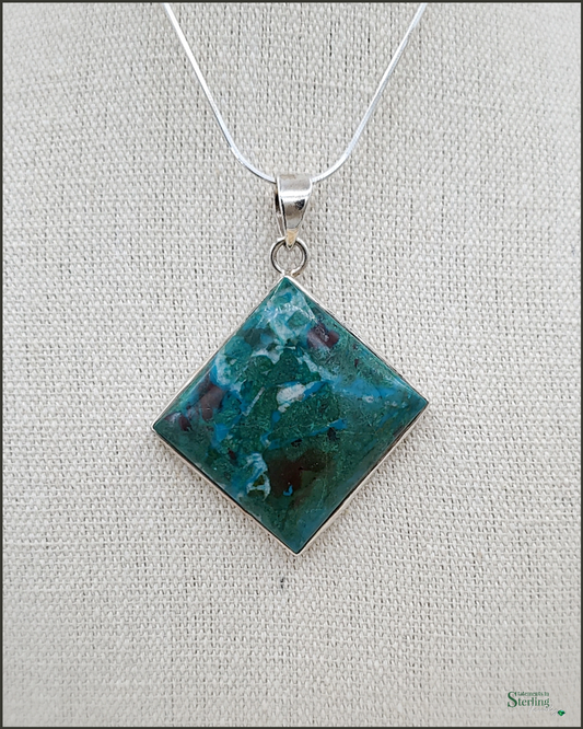 Gemstone and Sterling Silver Oval Pendant in Malachite