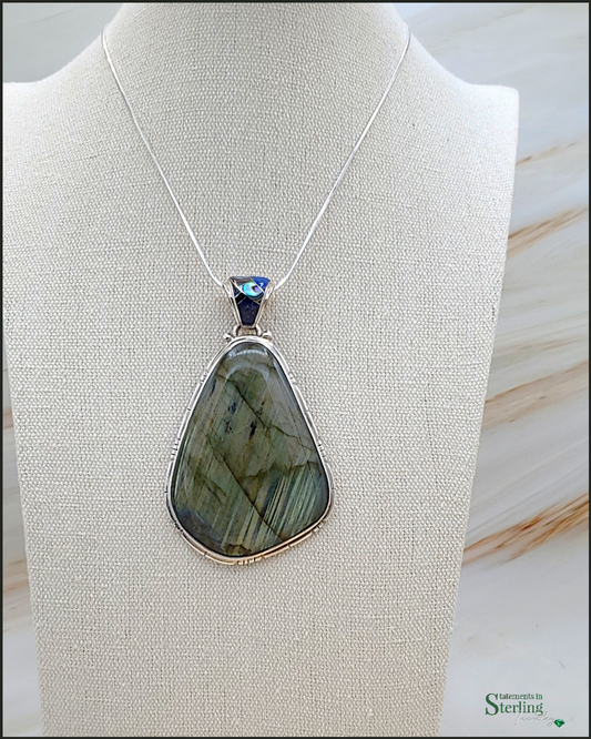 Fire Labradorite and Sterling Silver Southwest Pendant