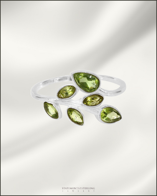Gemstone and Sterling Silver Leaves Ring in Peridot
