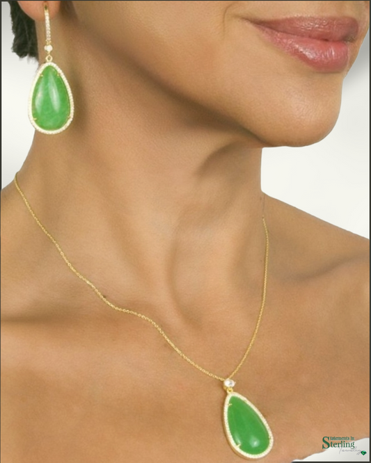 Agate and Sterling Silver Teardrop Necklace in Gold