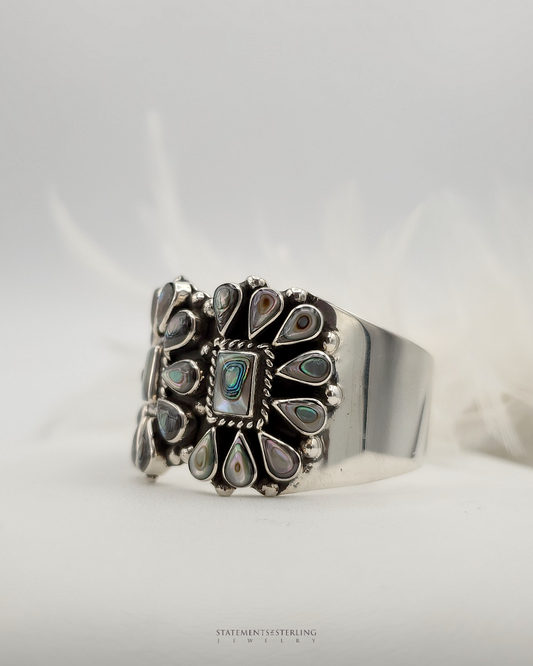 Abalone Shell Inlay and Sterling Silver Teardrop Cluster Adjustable Ring