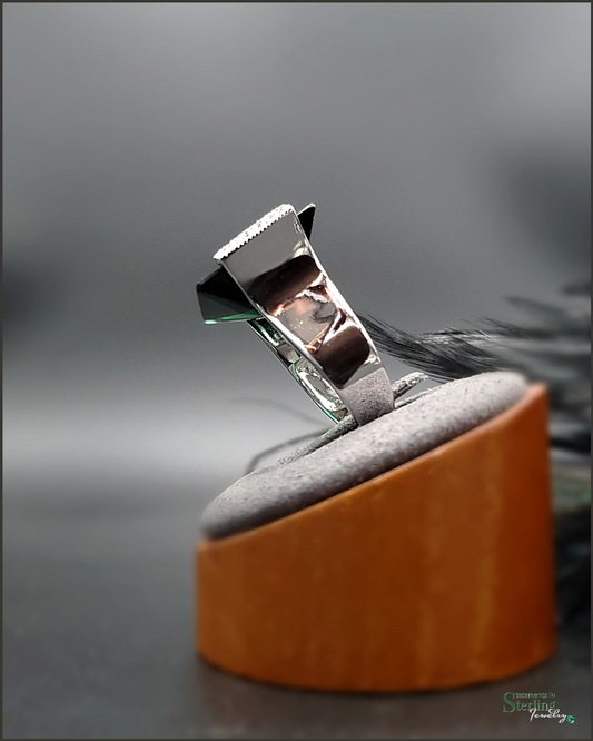 Chrome Diopside, White Topaz and Sterling Silver Art Deco Ring