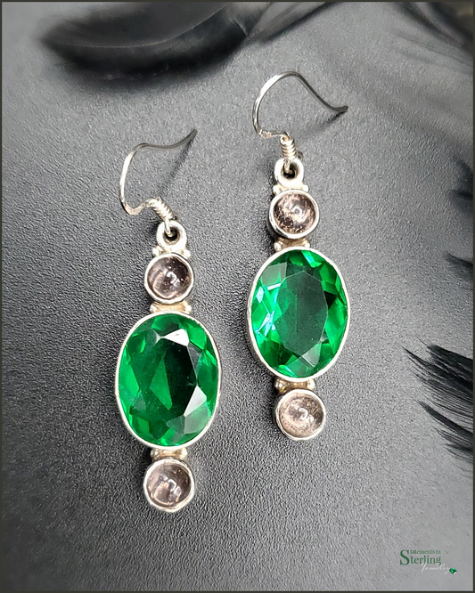 Chrome Diopside and Sterling Silver Two Stone Drop Earrings
