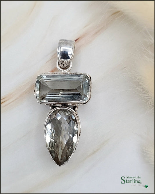 Green Amethyst and Sterling Silver Two Stone Pendant