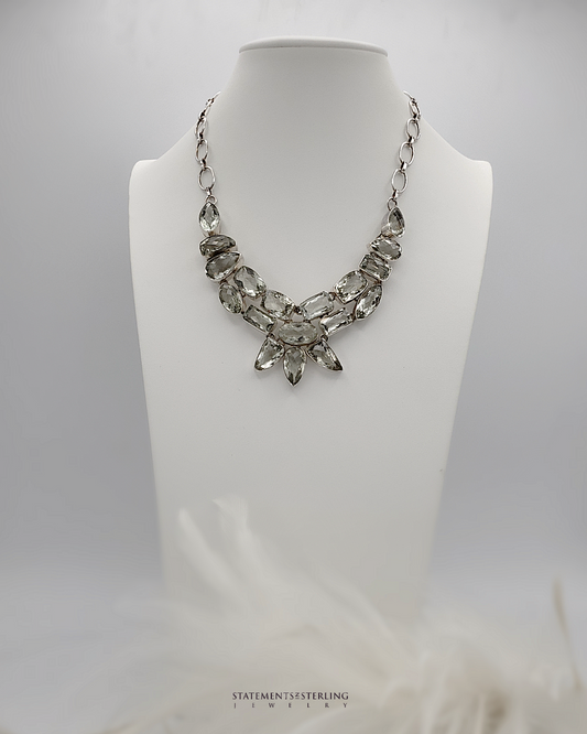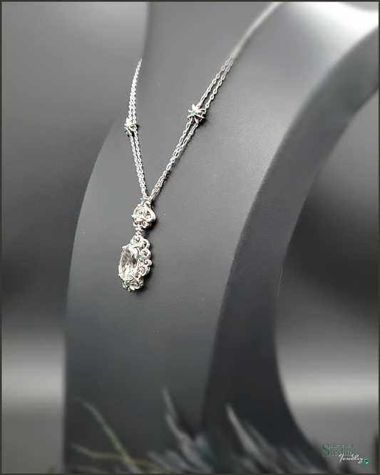 Vintage Prasiolite, Zambian Emerald and Sterling Silver Victorian Necklace