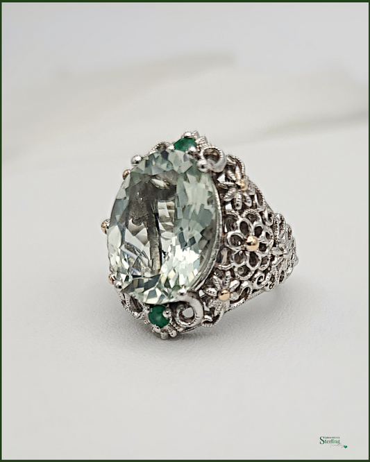 Vintage Prasiolite, Zambian Emerald and Sterling Silver Victorian Ring
