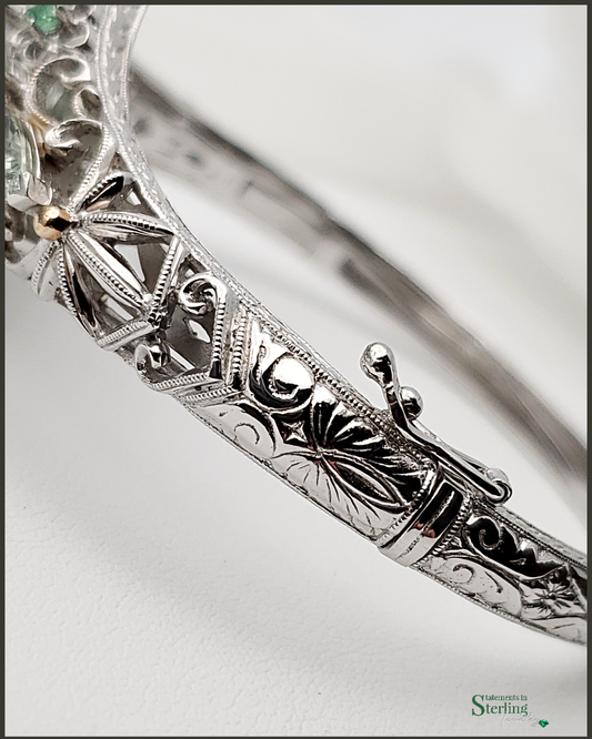 Vintage Prasiolite, Zambian Emerald and Sterling Silver Victorian Bracelet