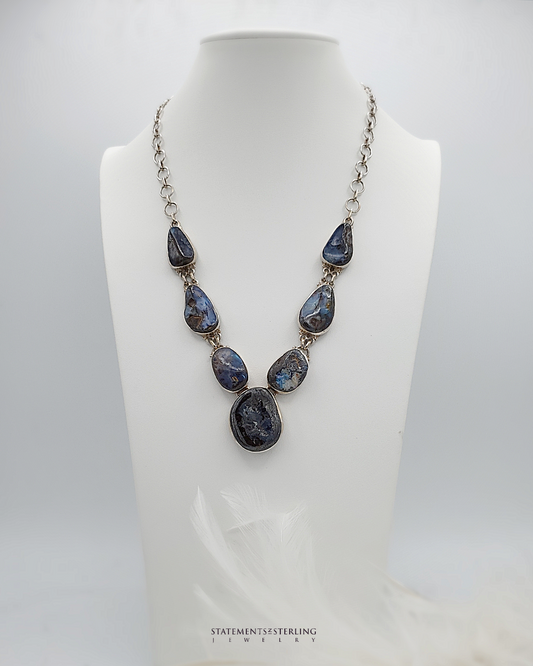 Australian Boulder Opal and Sterling Silver Statement Necklace