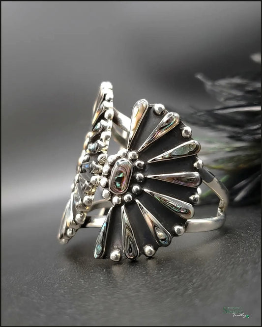 Abalone Shell Inlay and Sterling Silver Flower Cuff Bracelet