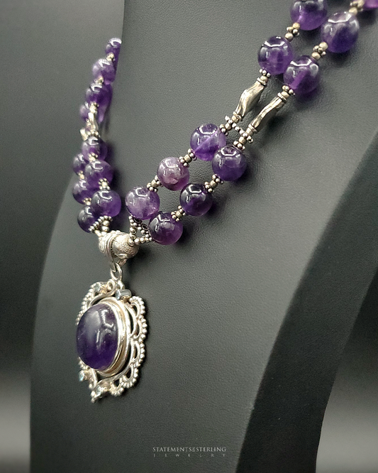 Purple African Amethyst, Swiss Blue Topaz and Sterling Silver Necklace