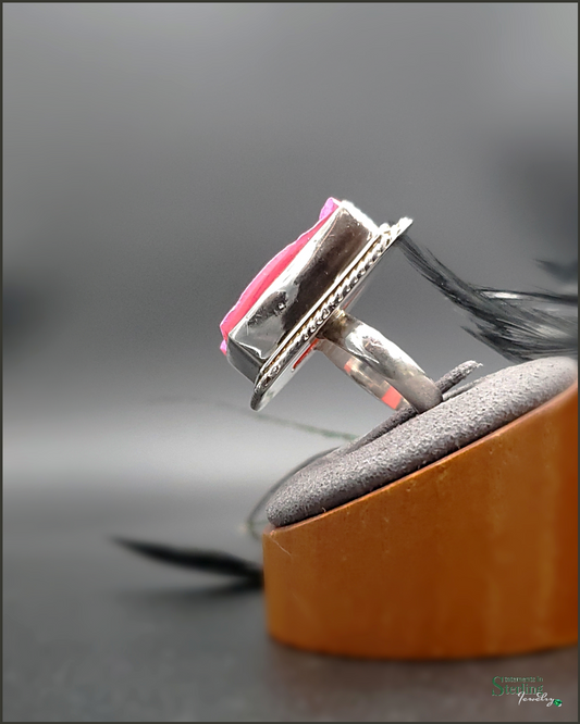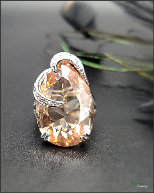 Peach Quartz, White Topaz and Sterling Silver Ring