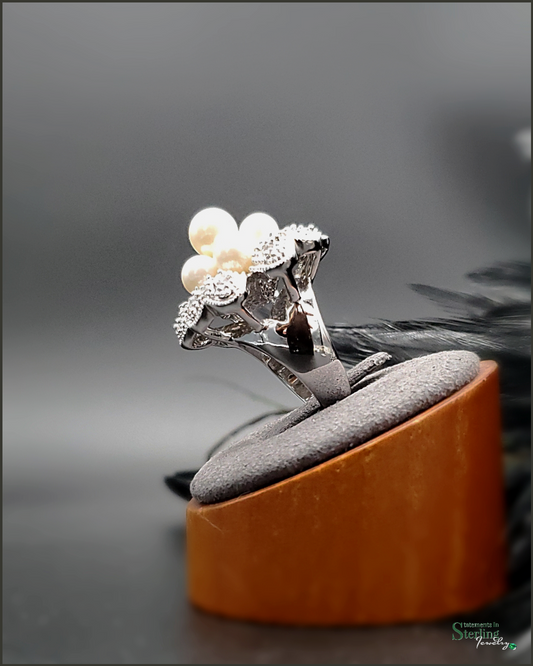 Pearl, White Topaz and Sterling Silver Forever Flower Ring