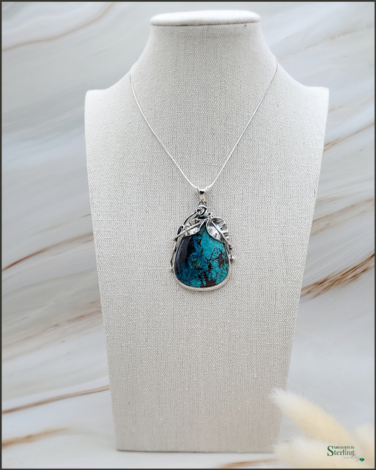 Parrot's Wing Chrysocolla and Sterling Silver Leaves Pendant
