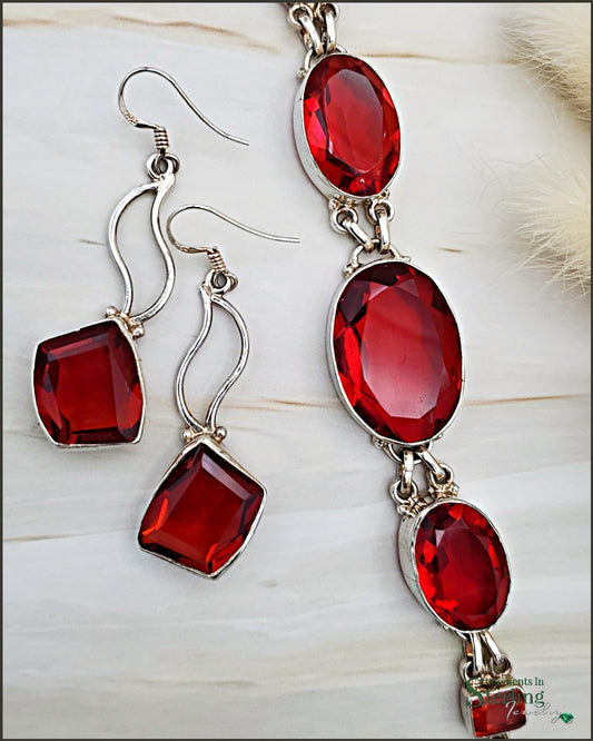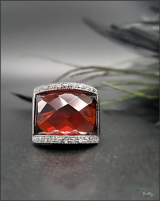Red Quartz, White Topaz and Sterling Silver Art Deco Ring