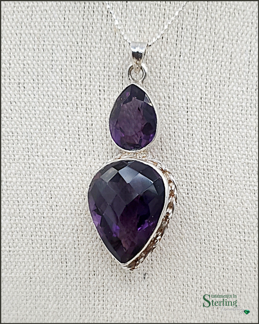 Purple Quartz and Sterling Silver Two Stone Pendant
