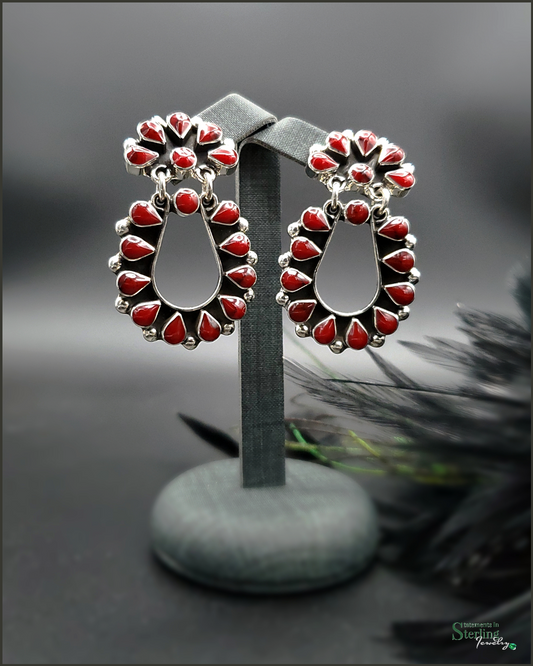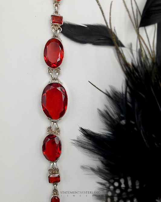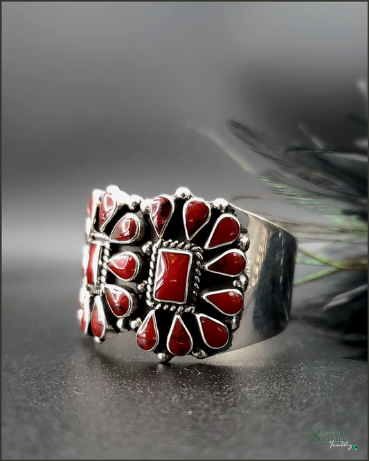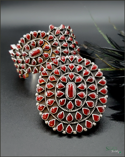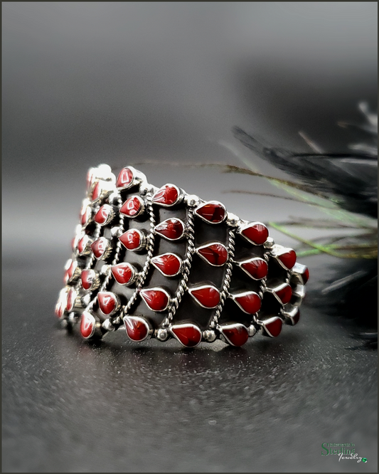 Red Jasper and Sterling Silver Teardrop Cluster Cuff Bracelet