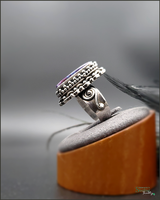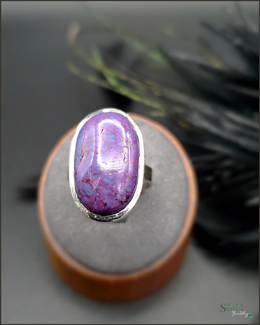 Purple Spiny Oyster and Sterling Silver Flower Cuff Bracelet by Sandra Parkett