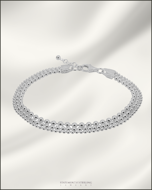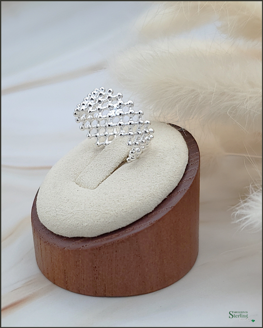 Sterling Silver Bead Ring Band with Cubic Zirconia in Rhodium