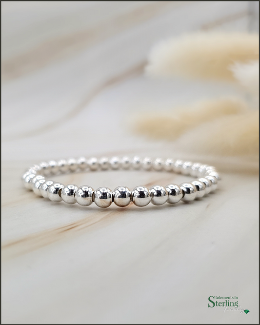 Sterling Silver Bead Ring Band with Cubic Zirconia in Gold
