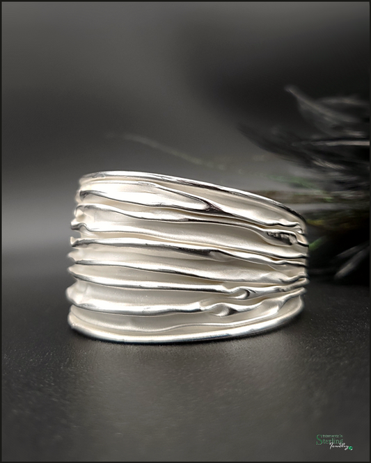 Sterling Silver Crinkle Bold Cuff Bracelet in Matte