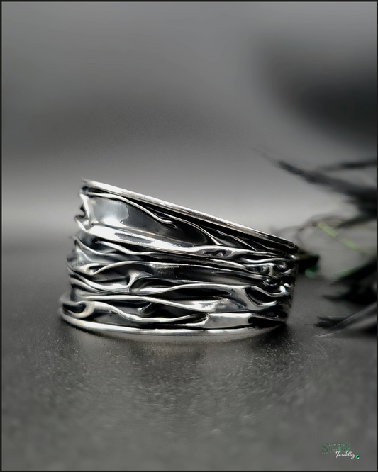 Sterling Silver Crinkle Bold Cuff Bracelet in Oxidized