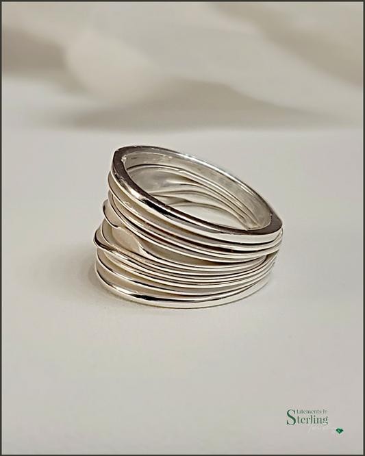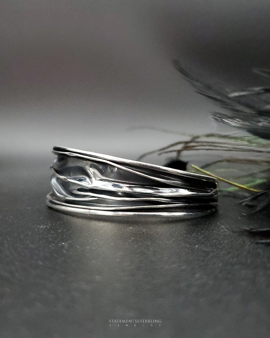 Sterling Silver Crinkle Cuff Wave Bracelet in Oxidized