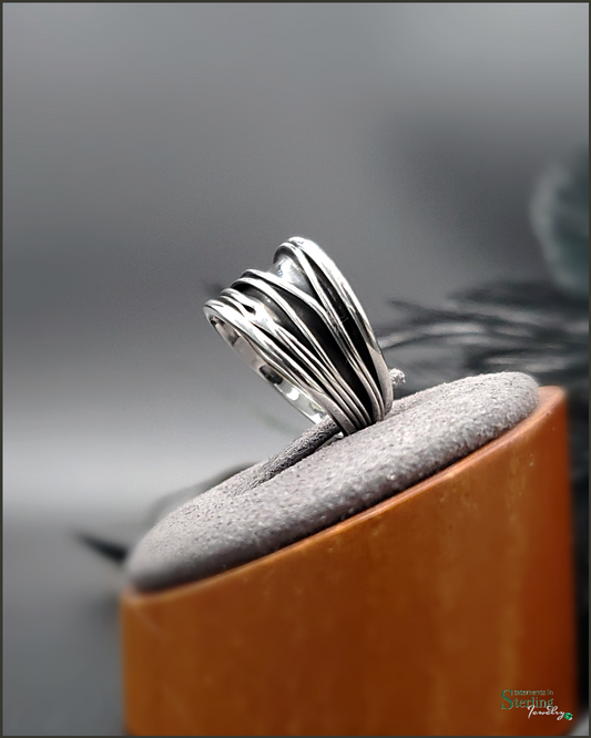 Sterling Silver Crinkle Petite Ring in Oxidized
