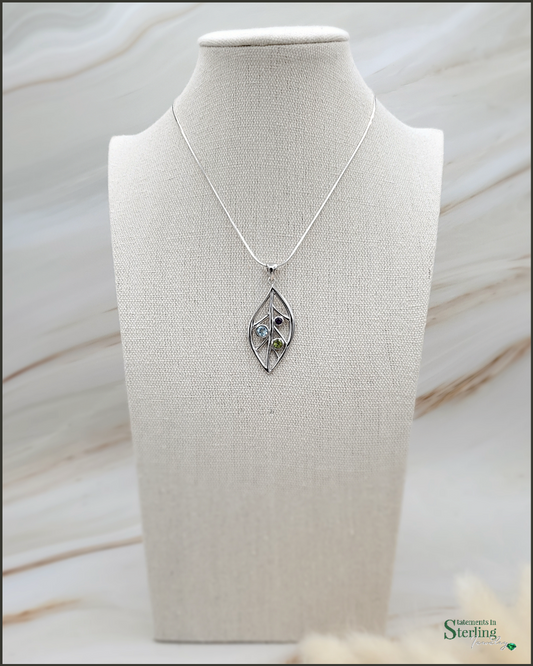 Sterling Silver Leaves Pendant in Multi-gem