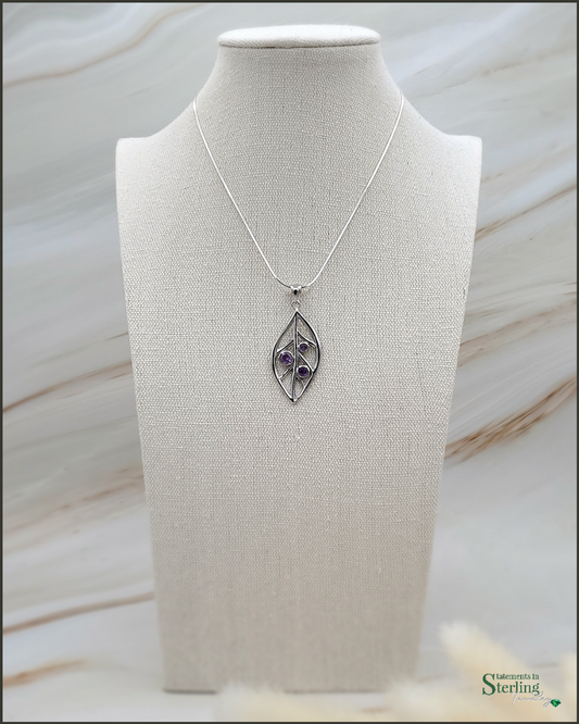 Sterling Silver Leaves Pendant in Amethyst