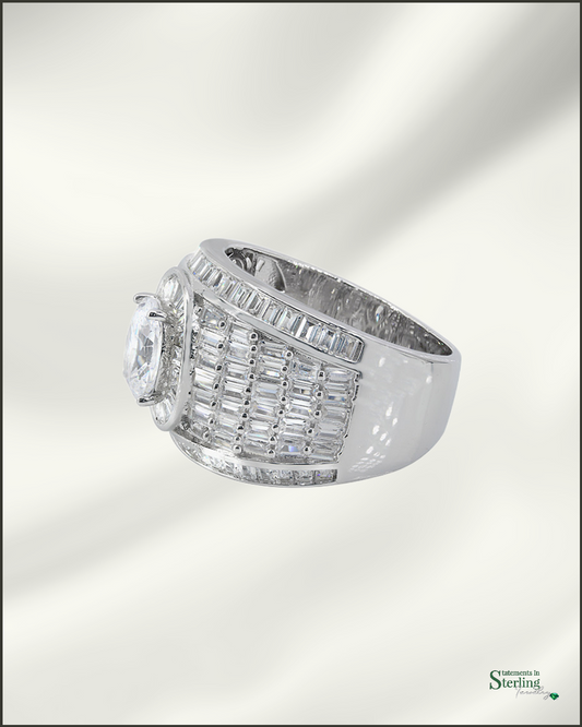Sterling Silver Men's Cocktail Style Ring with Cubic Zirconia in Rhodium
