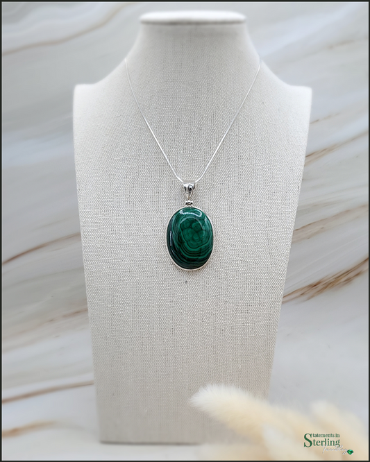 Malachite and Sterling Silver Oval Pendant