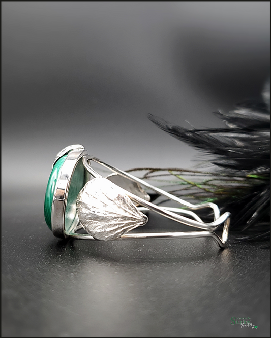 Malachite And Sterling Silver Leaves Cuff Bracelet