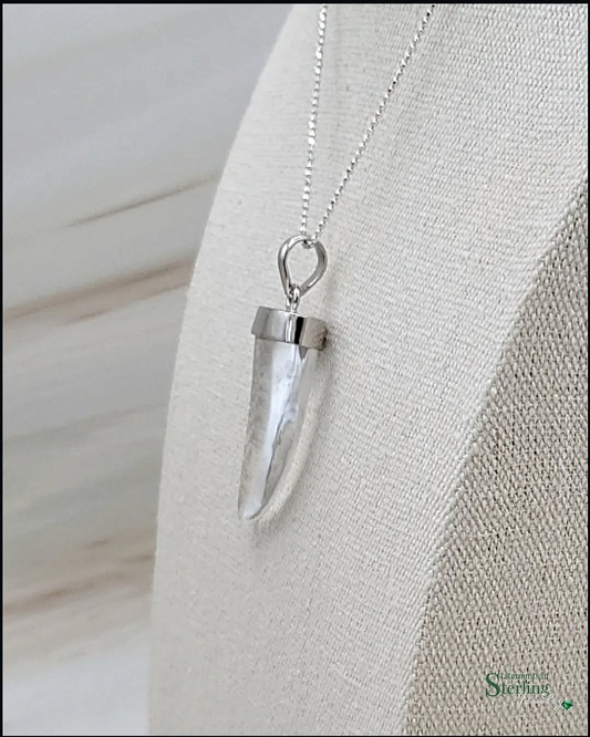 Large Sterling Silver and Clear Quartz Tusk Pendant