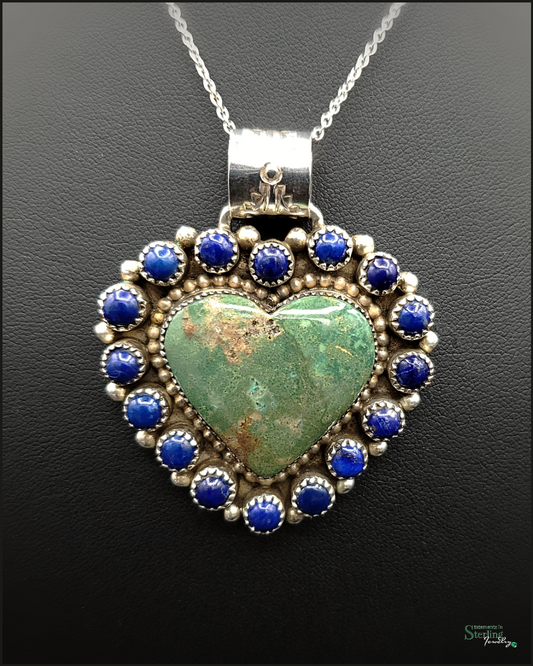 Kingman Turquoise, Lapis Lazuli and Sterling Silver Custom Heart Pendant by Sandra Parkett