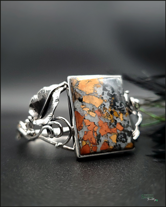 Maligano Jasper and Sterling Silver Leaves Bangle Bracelet