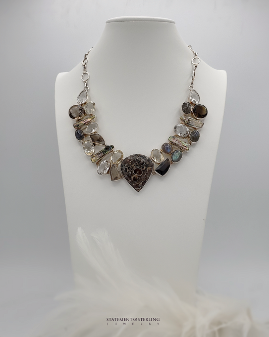 Crinoid Fossil and Multi Gemstone Sterling Silver Stunner Necklace