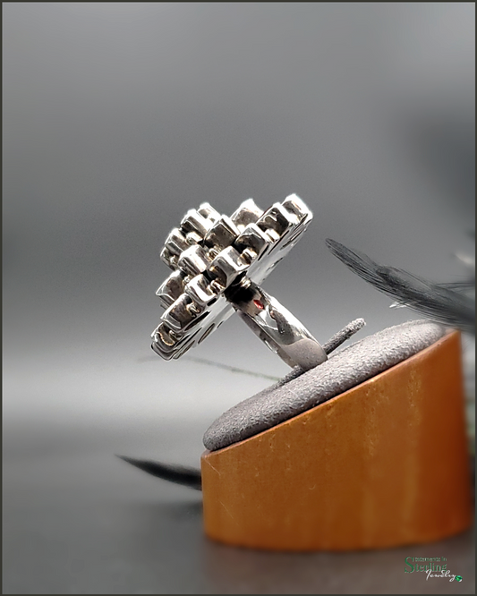 Chrome Diopside, White Topaz and Sterling Silver Art Deco Ring