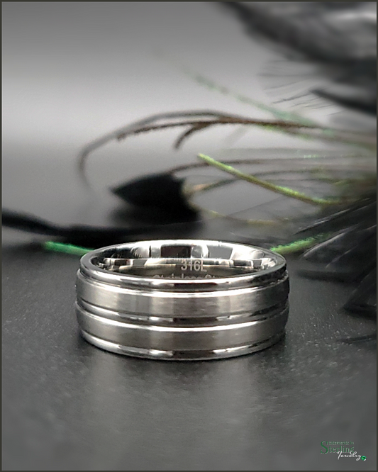 Stainless Steel Layered Ring Band in Brushed and Polished