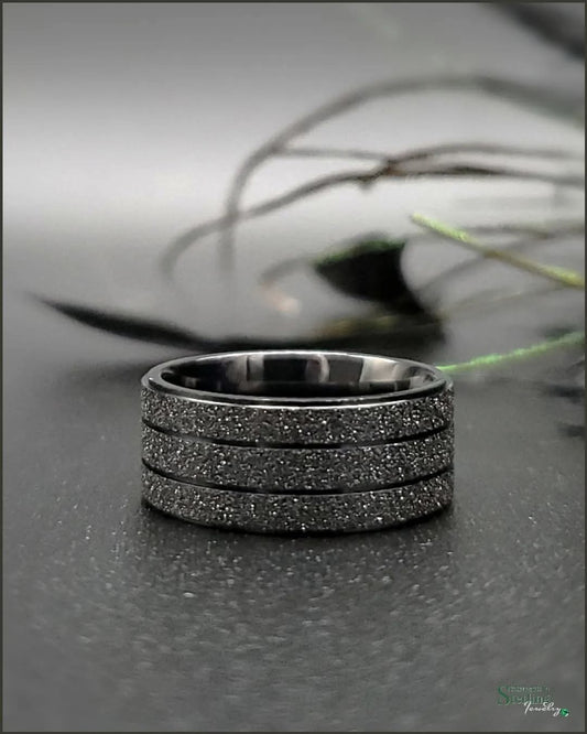 Stainless Steel Layered Ring Band in Black Sandblast