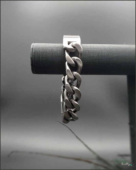 Stainless Steel Curb Link Bracelet in Oxidized