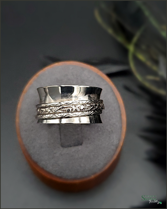 Sterling Silver Detailed Spinner Ring