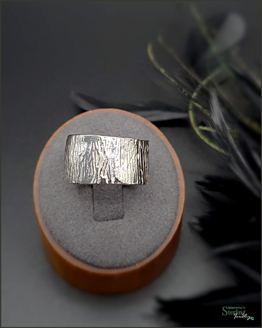 Sterling Silver Bark Pattern Cigar Band Ring