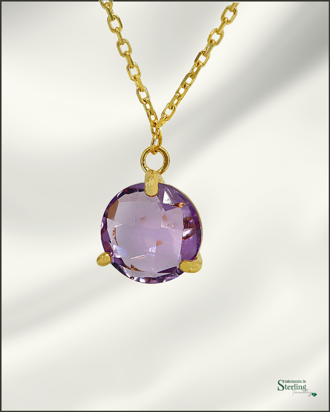 This delicate 10k yellow gold necklace features a sparkling prong set purple amethyst stone. Crafted in Italy, this necklace features a lobster claw clasp and an adjustable length.