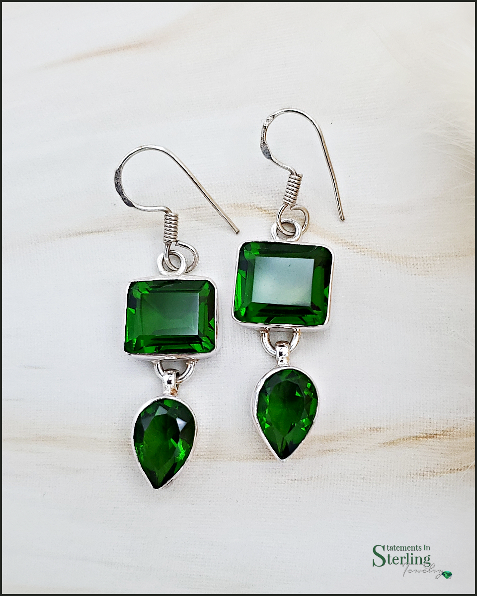 De superbes pierres diopside chromées vertes dans ces boucles d'oreilles en argent sterling, deux pierres ajoutent une touche de couleur élégante. Fabriqué à la main par des artisans professionnels et unique en son genre.
