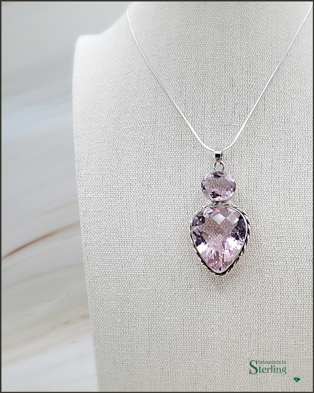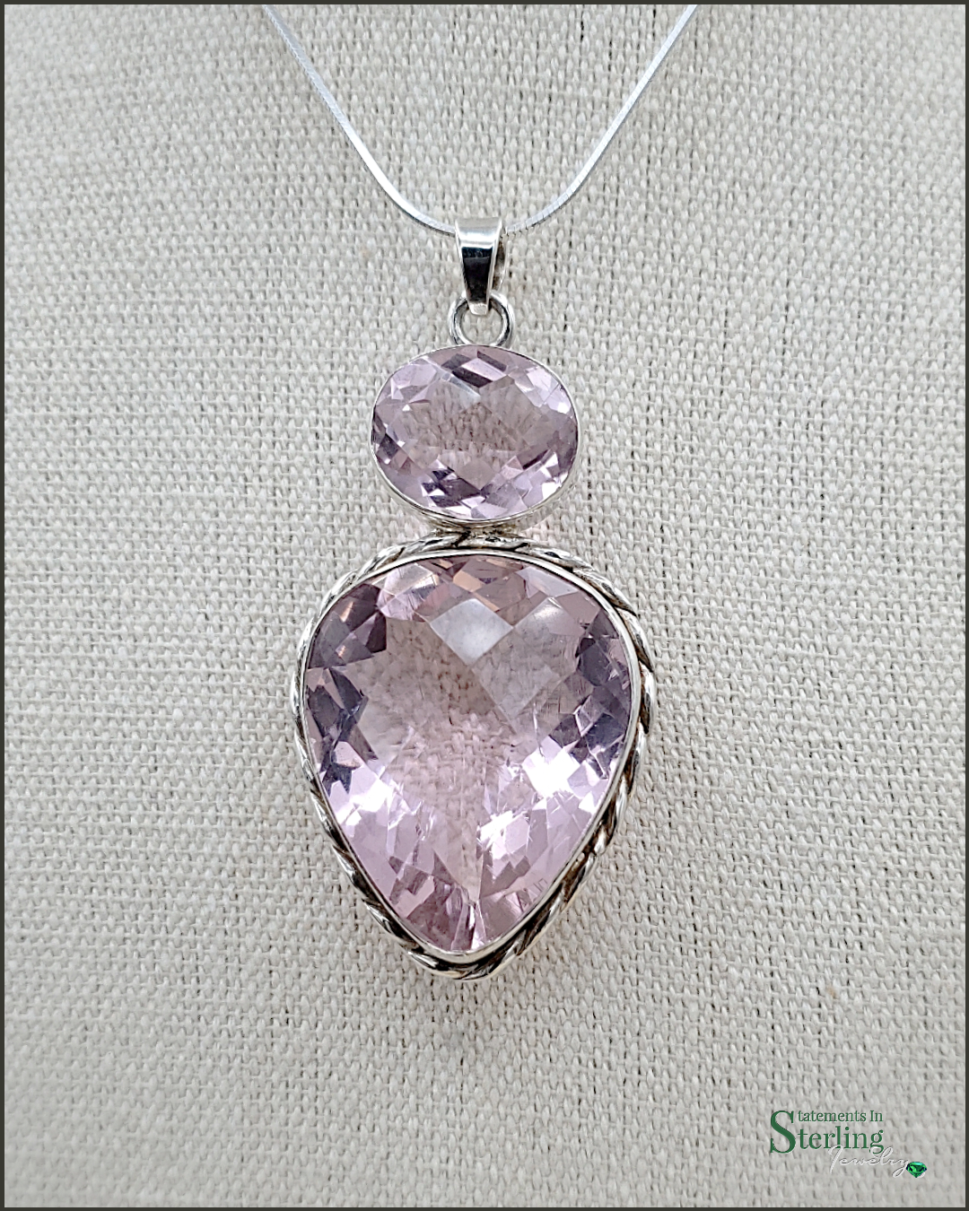 Norwegian Pink Fiord Quartz and Sterling Silver Two Stone Pendant