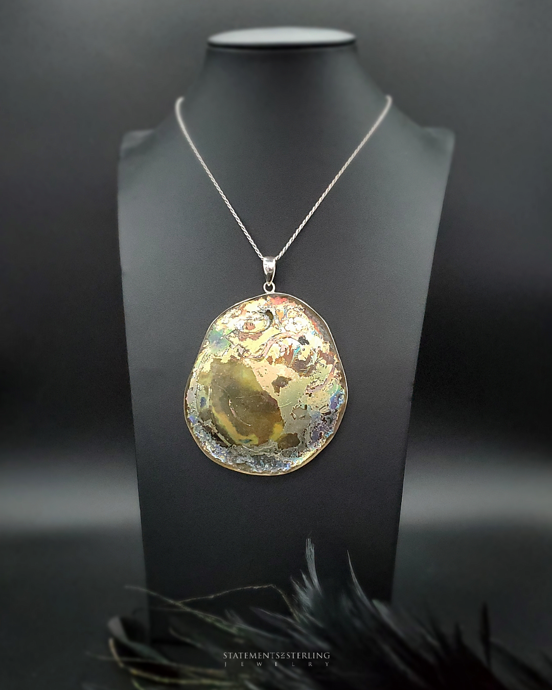 Roman Glass and Sterling Silver Statement Pendant III