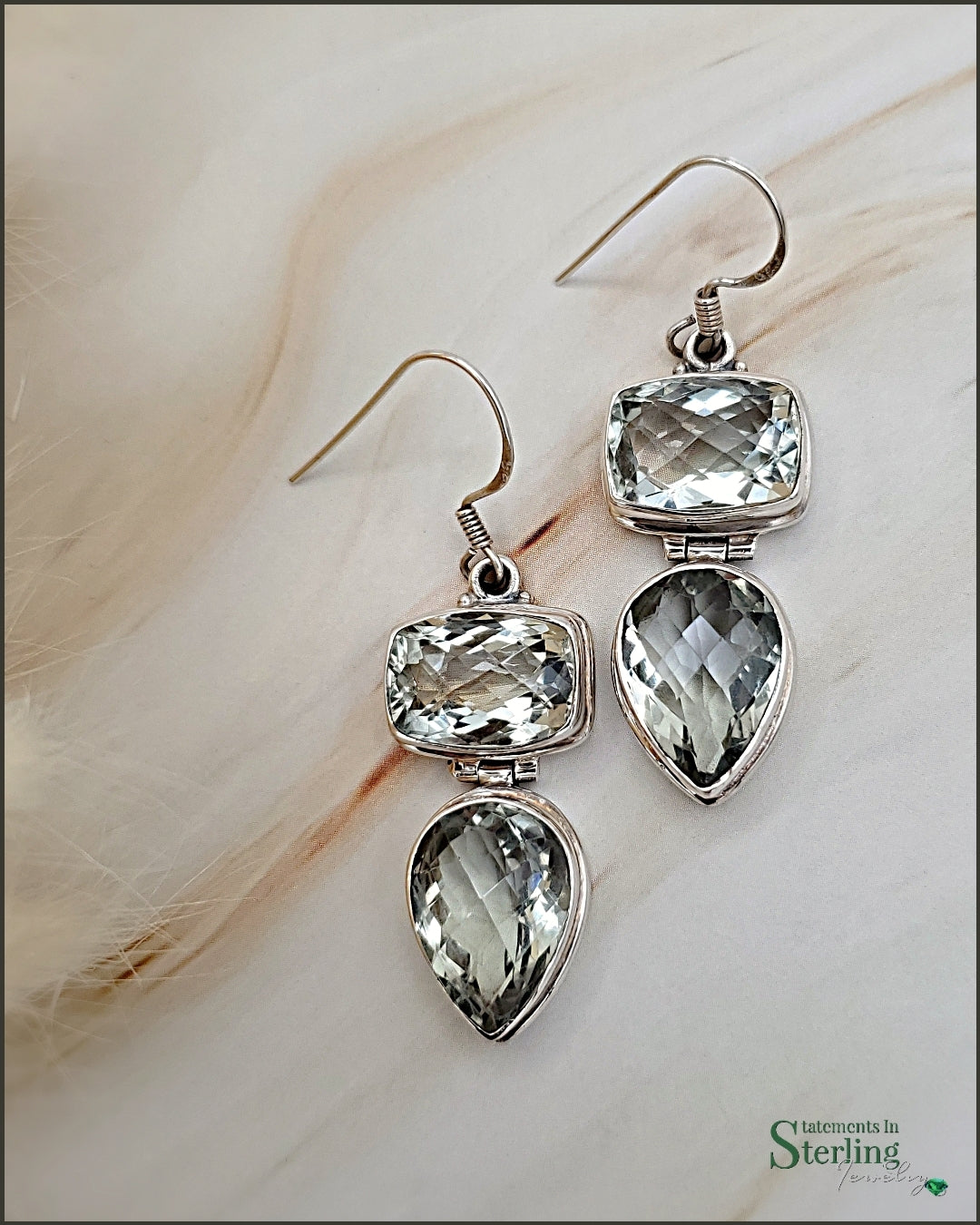 Green Amethyst and Sterling Silver Two Stone Sparkle Earrings