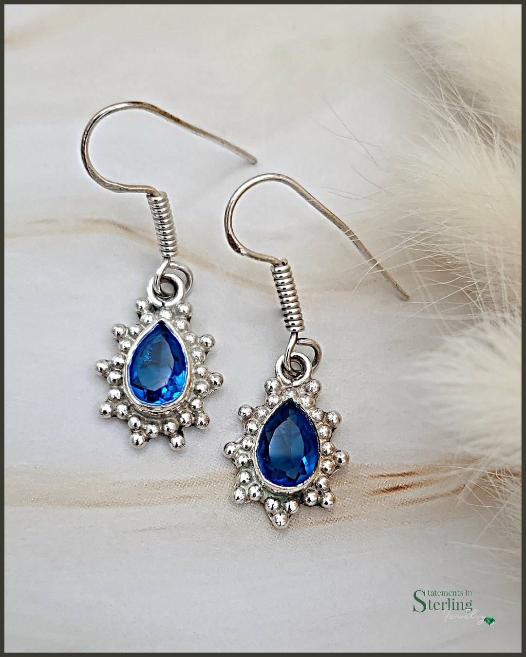 Siberian Blue Quartz and Sterling Silver Petite Teardrop Earrings