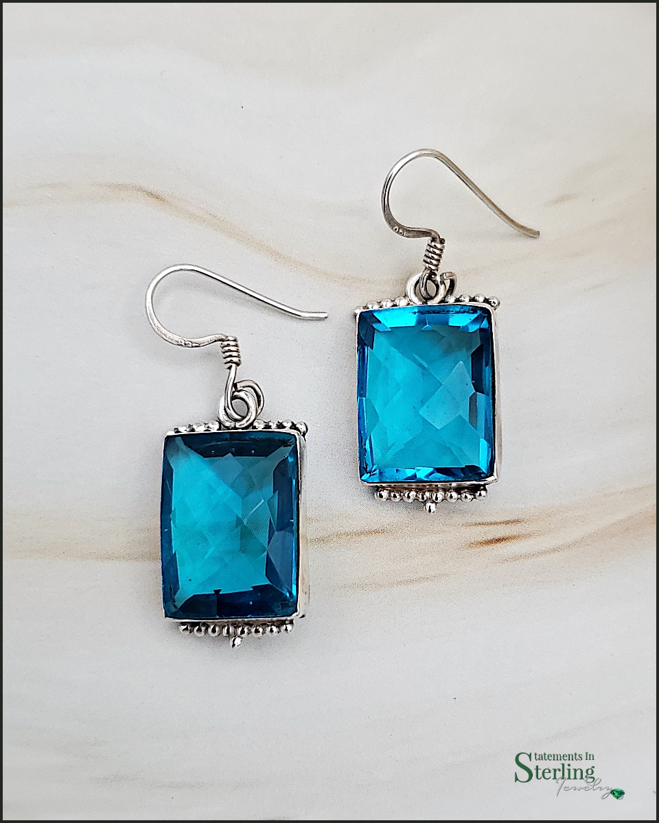 Only blue skies ahead with these vibrant checkerboard cut quartz and .925 sterling silver earrings with French hook styling. Handcrafted by professional jewellery artisans and one of a kind.